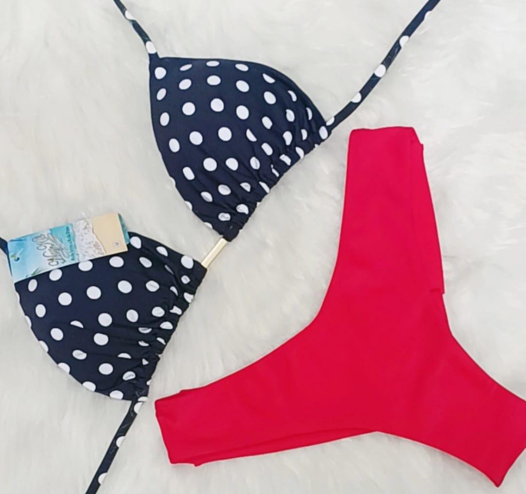 Top Cortininha com Bojo removivel e calcinha modelo asa delta fio duplo .