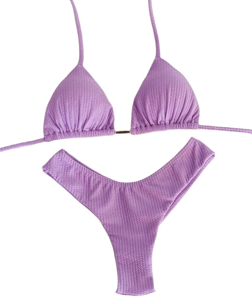 Biquini Cortininha C/ Calc. Fio Duplo Asa Delta Texturizado, Lilás
