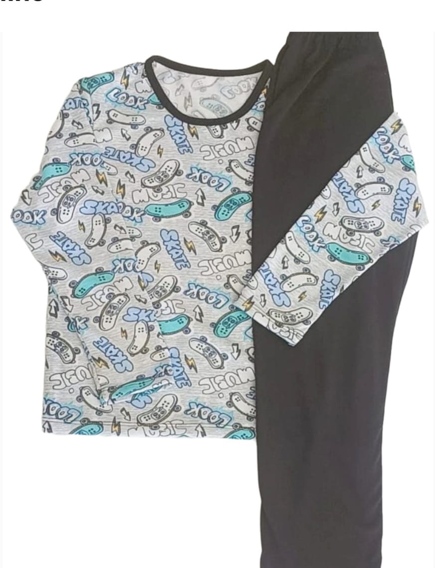 Pijama Infantil Menino, Estampado C/ Calça Preta