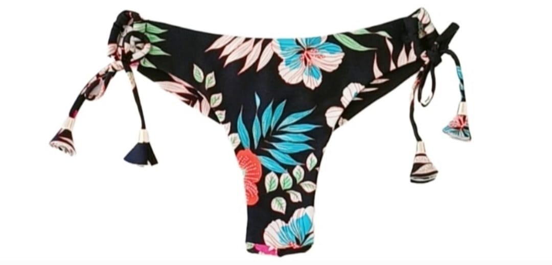 Calcinha De Bíquini Fio Duplo, Preto Florido